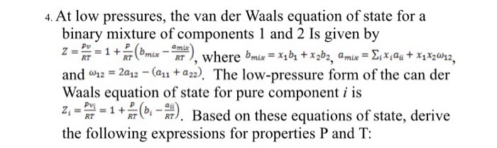 4 At Low Pressures The Van Der Waals Equation Of Chegg Com